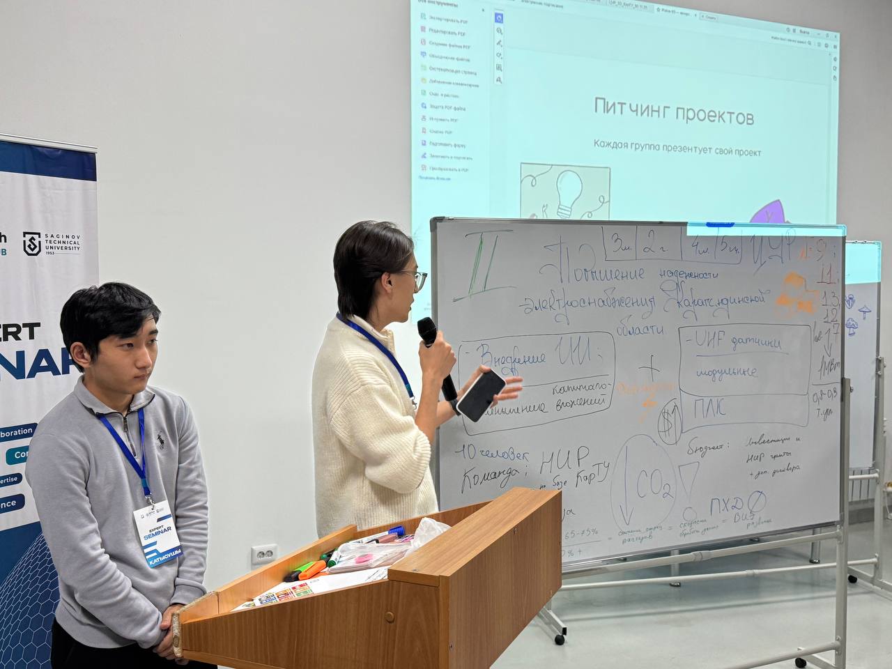 Қатысушылар тұрақтылыққа, цифрландыруға, жасыл экономикаға байланысты өзекті бағыттарға, сондай-ақ жобаларды халықаралық инновациялық кеңістікке интеграциялау құралдарымен танысты. Практикалық бөлім командалық жұмыс форматында өтті: бес топ өздерінің жобалық тұжырымдамаларын әзірледі және сарапшылардан жеке ұсыныстар алды.