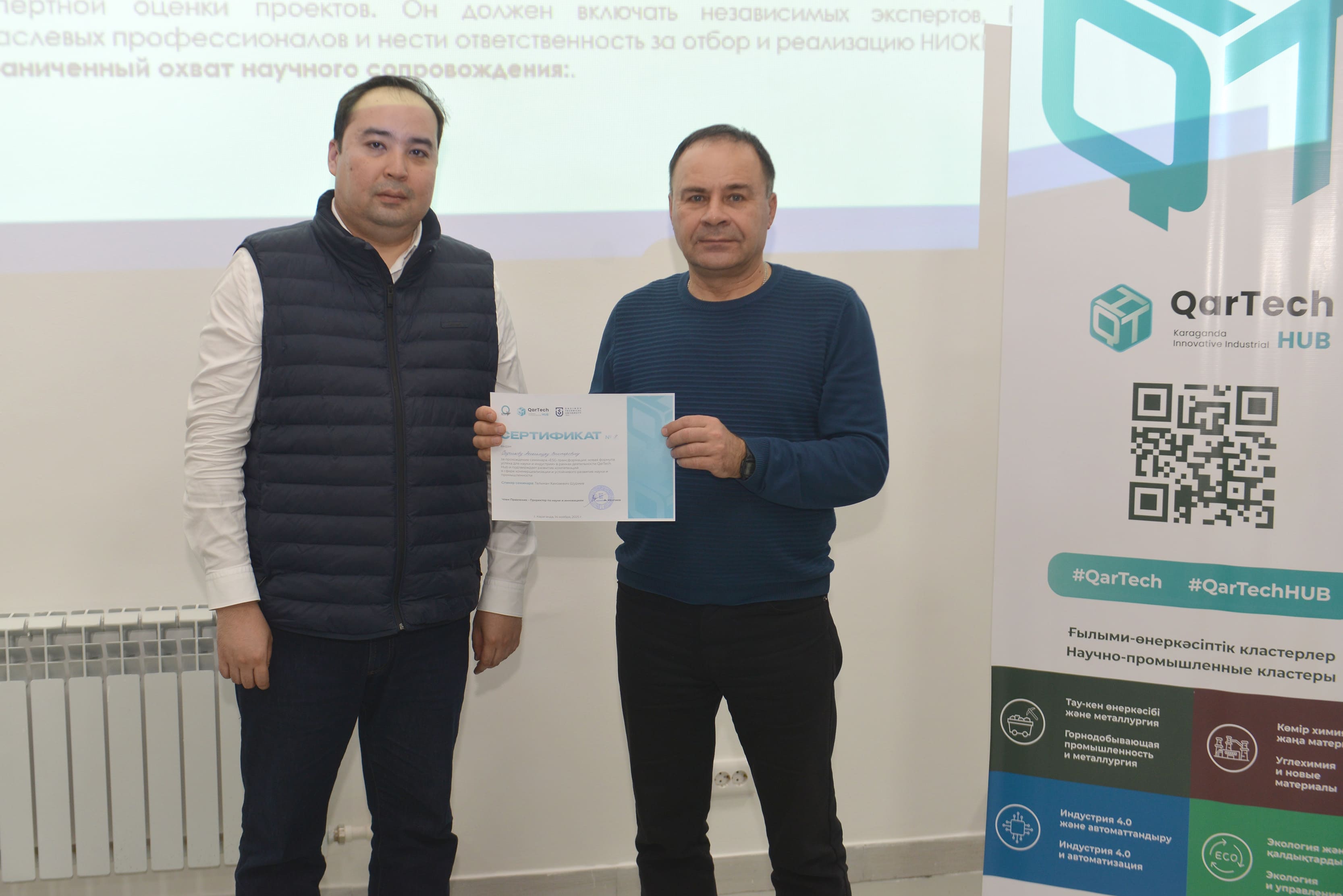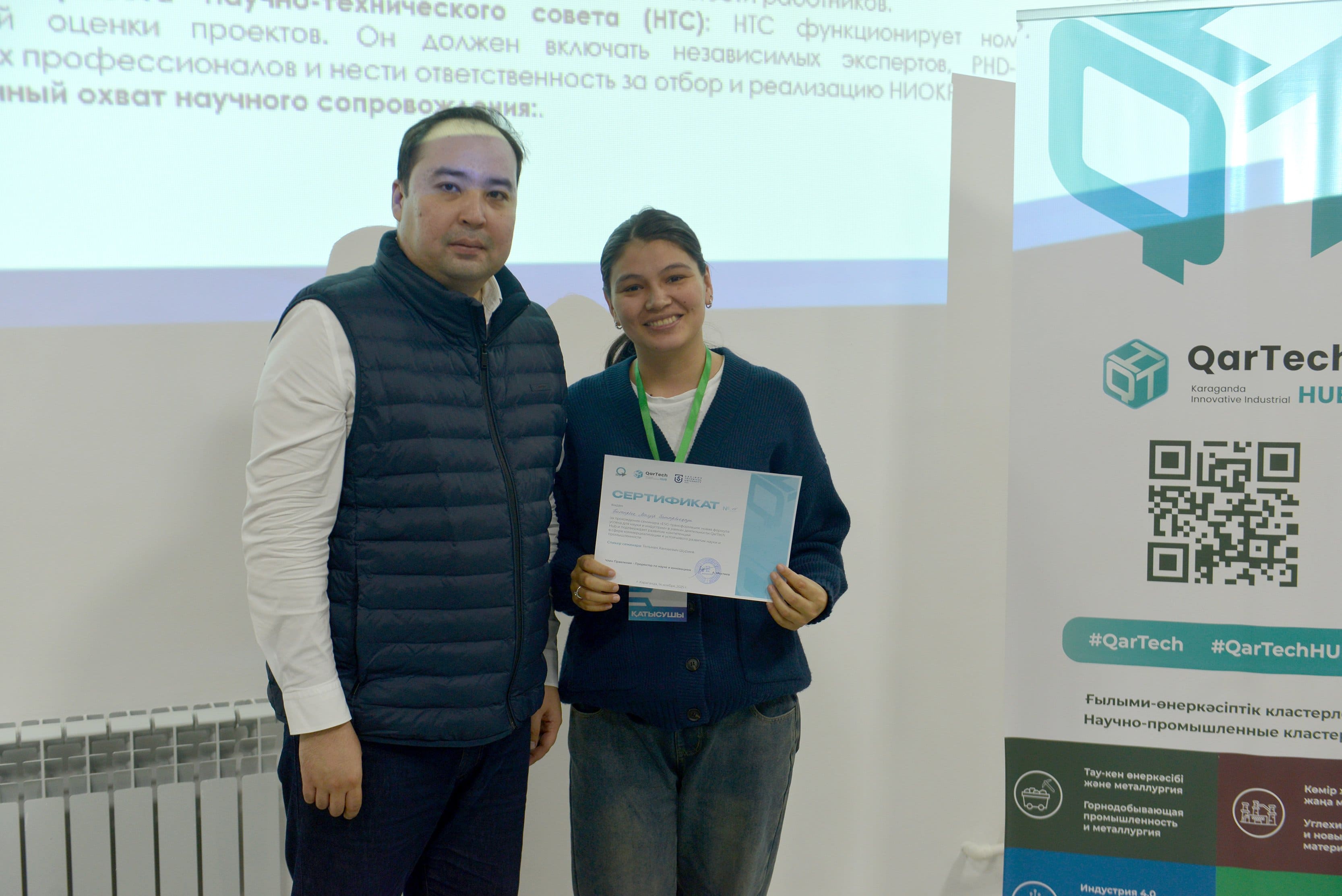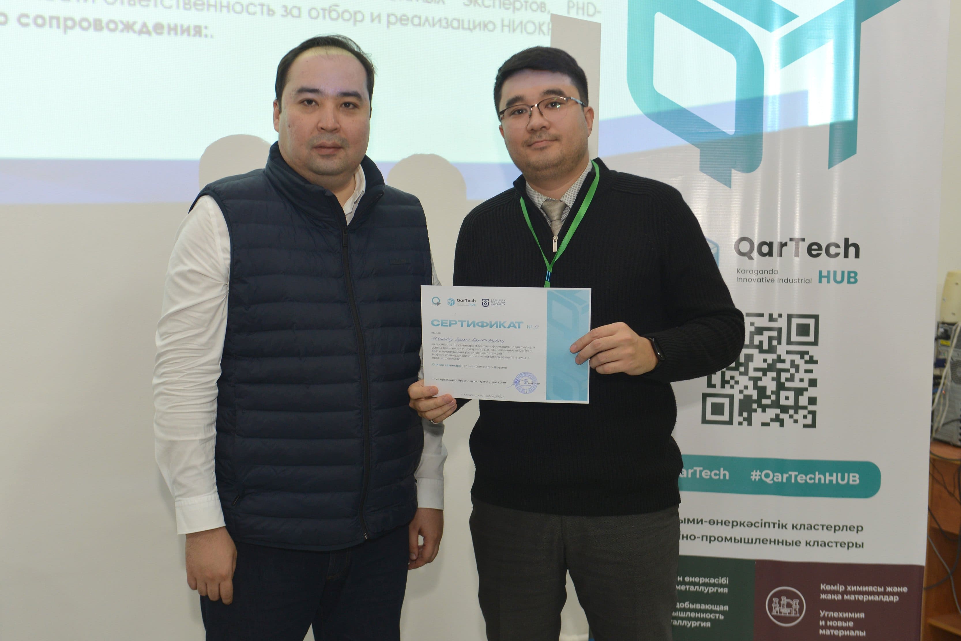 14 қарашада Әбілқас Сағынов атындағы Қарағанды техникалық университетінің базасында QarTech өңірлік инновациялық-индустриялық хабы аясында «ESG-трансформация: ғылым мен индустрия үшін табыстың жаңа формуласы» атты эксперттік семинар өтті.