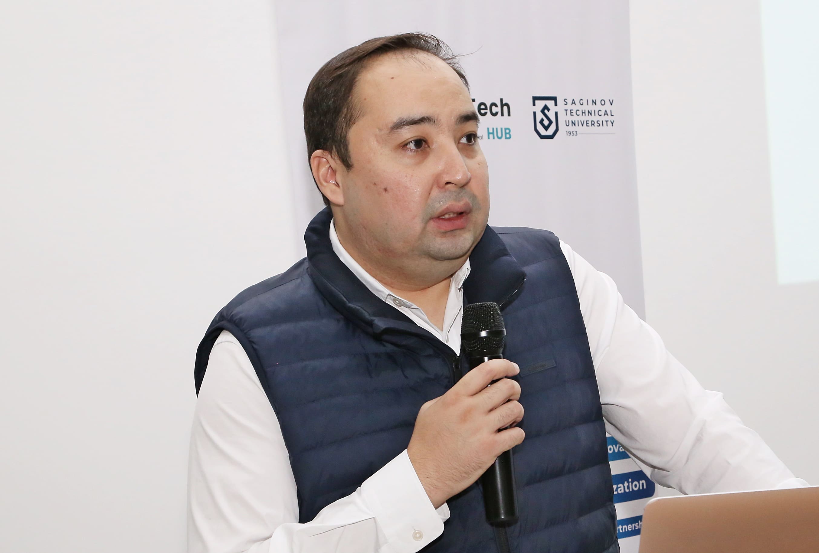 Басқарма мүшесі – Ғылым және инновациялар жөніндегі проректор Али Мехтиев кіріспе сөз сөйлеп, ESG-трансформацияның бүгін бірінші орынға шығып, ғылым мен индустрияның табысының жаңа формуласына айналып келе жатқанын атап өтті. Оның айтуынша, тұрақтылық қағидаттары мен Тұрақты даму мақсаттарын интеграциялау бәсекеге қабілеттіліктің маңызды шарты әрі өңірдің инновациялық өсімінің негізгі драйвері болып отыр.